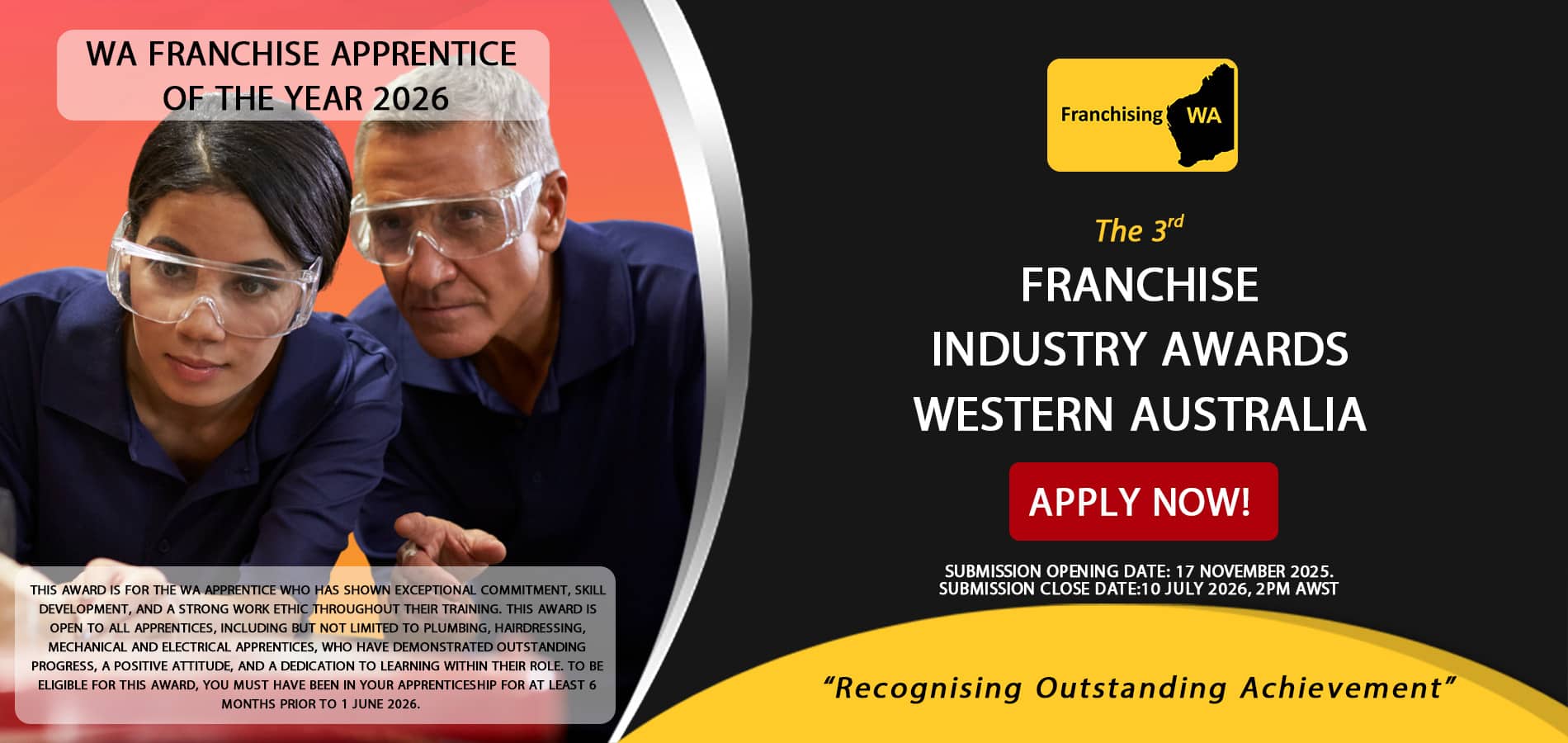 Apply today!! https://franchisingwa.com.au/industry-awards-western-australia-2026/categories.html